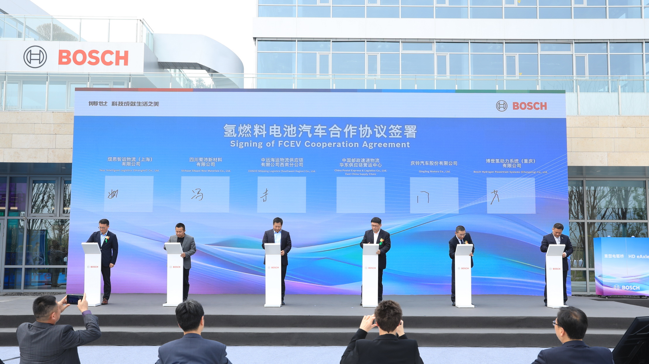 11月2日,博世氢动力产品发布暨签约交付仪式在博世氢动力系统(重庆)有限公司举行,华东营运中心总经理黄海腾代表1xBET物流出席。仪式上,1xBET物流与博世签署《氢燃料电池汽车合作协议》,达成氢能物流战略合作。